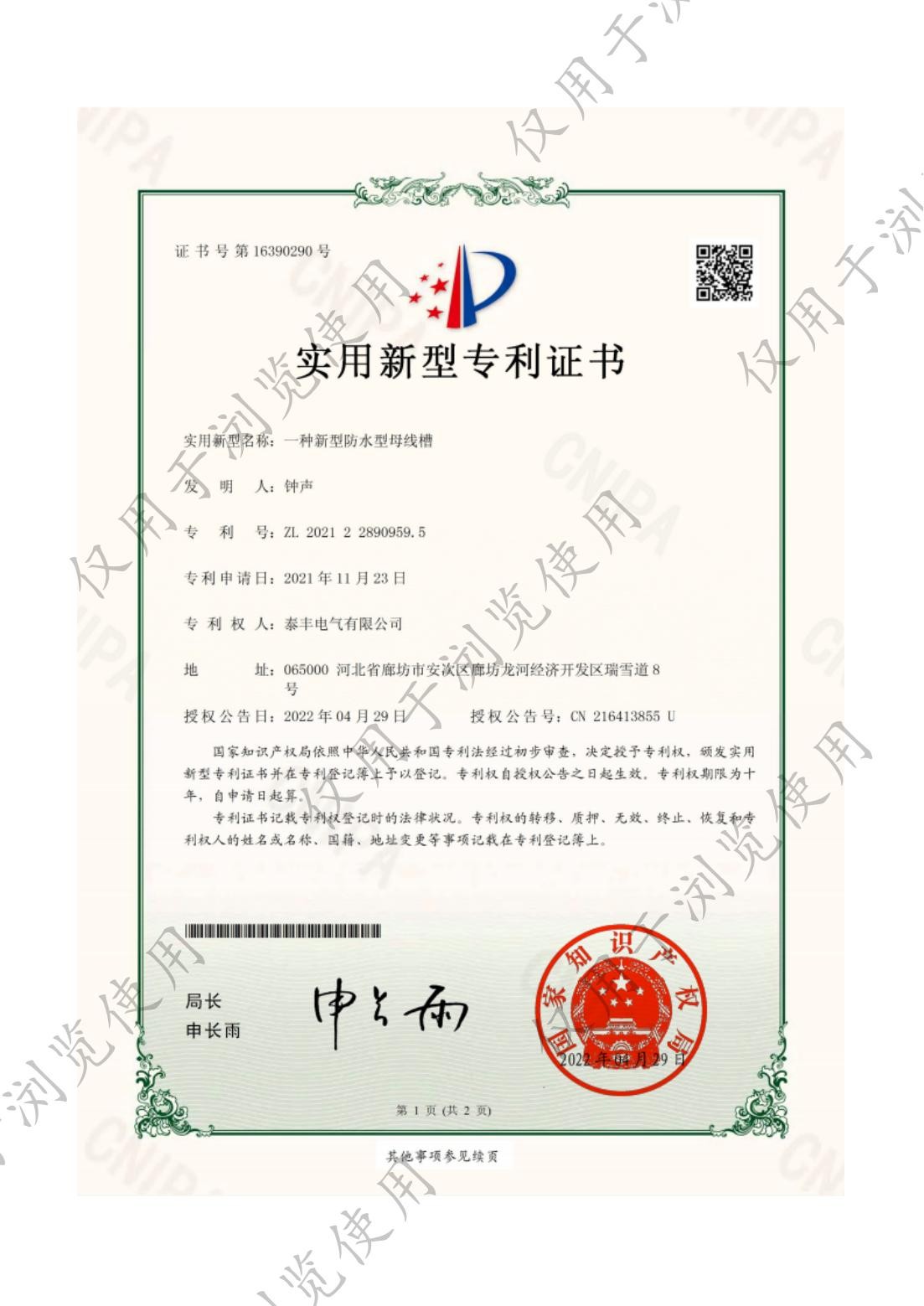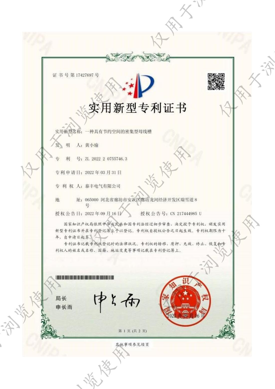 泰丰电气有限公司-一种其有节约空间的密集型母线槽
