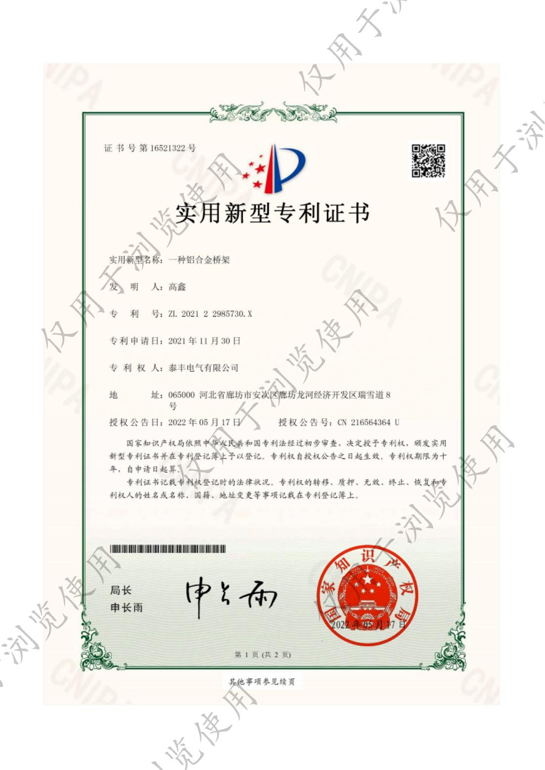 泰丰电气有限公司-一种铝合金桥架