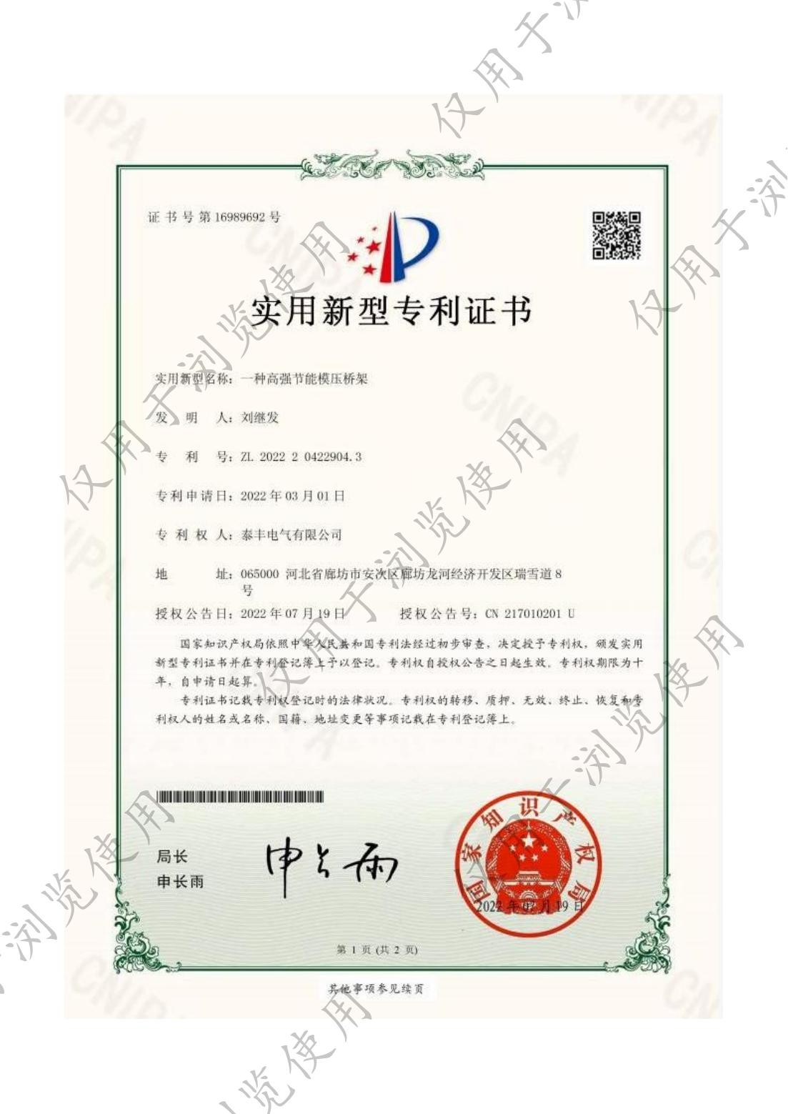 泰丰电气有限公司-一种高强节能模压桥架